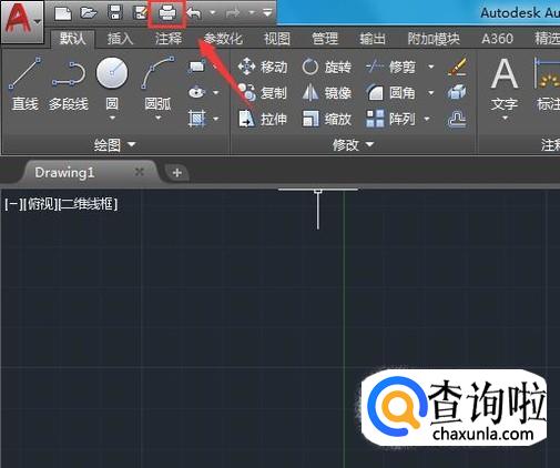 首先将CAD打开,然后在常用菜单那里找到打印选项,如图所示: