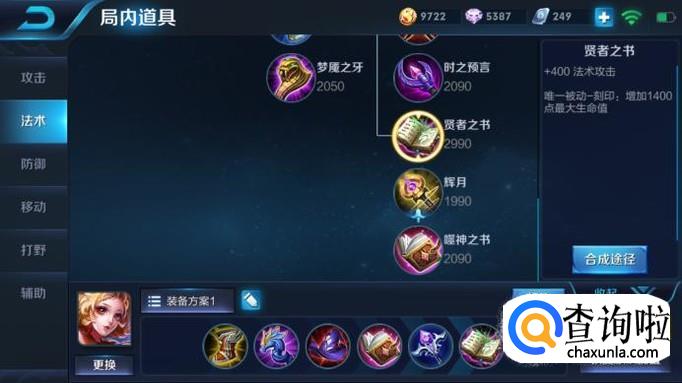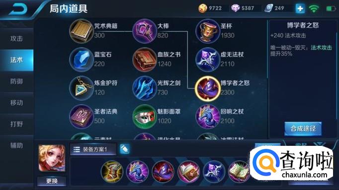 出装方面,前期出门先买疾步之靴,增加妲己的支援队友速度,第二件买回响之杖,240的法强加成,配合回响之杖的被动可以让妲己的技能伤害在前期就有一定起色;第三件博学者之帽,这件装备可以看做对法师的一个超度,其被动伤害百分之35的法强加成可以让妲己的伤害瞬间爆炸。