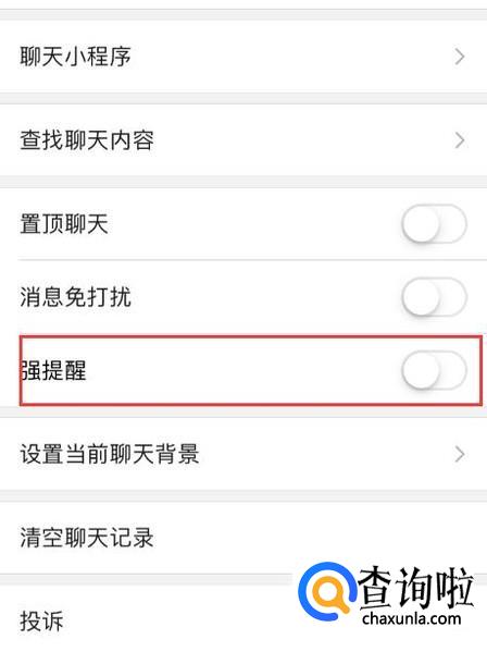 将强提醒功能打开,绿色则为打开状态。