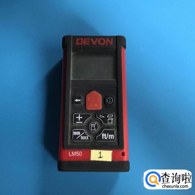 把激光测距仪放在需要测量的地方,按住中间红色的地方就可以测距了,见下图