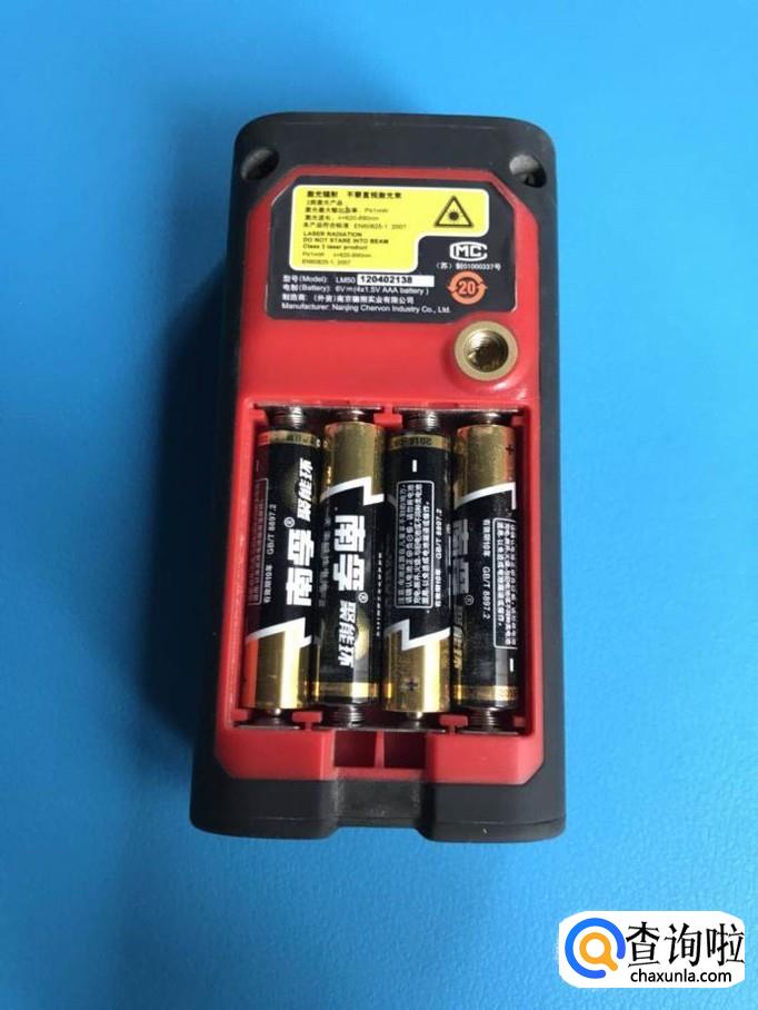 把激光测距仪里面装入电池,见下图