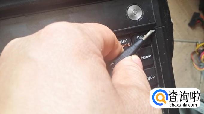 拆下固定键盘的螺丝,还不能拿下键盘,要先把电源按键板取下。用一个比较薄的工具小心撬开按键板右边一角,试探着掀开这一头,然后小心地把整个按键板拆下。