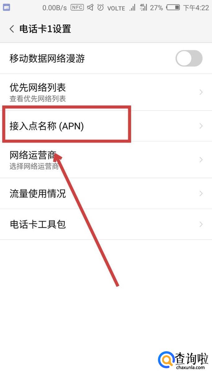 然后找到“接入点名称”,点击进入。