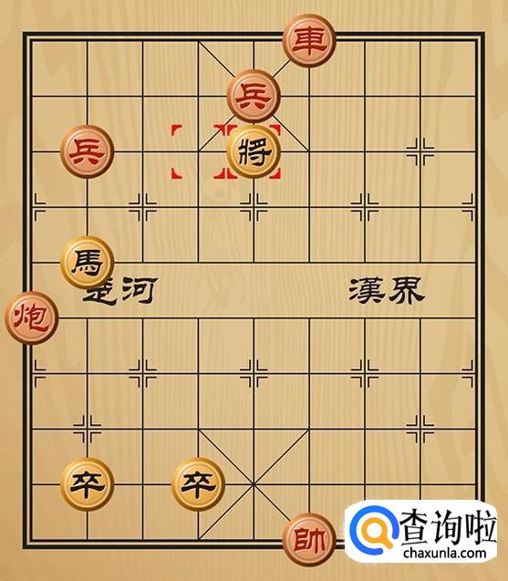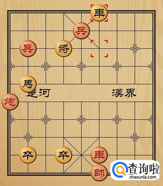 红方兵五平四形成车将军的棋局,黑方只能将5平4躲避。