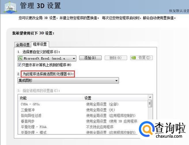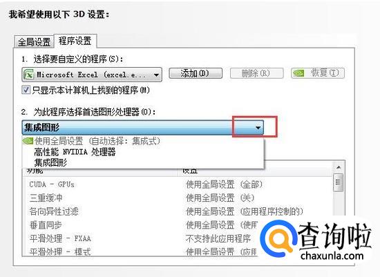在选择自定义界面中会看到为此程序选择首选图像处理器的功能,如图