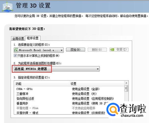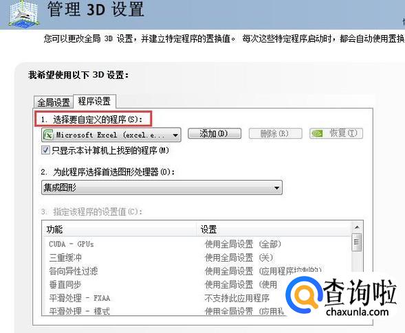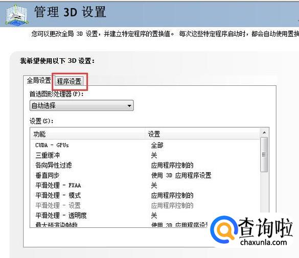 点击下3D管理设置功能会看到程序设置的功能,如图