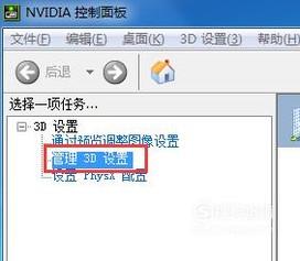 点击下NVIDIA控制面板的功能会来到3D设置的界面会看到管理3D管理设置的功能,如图