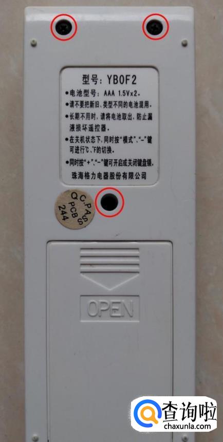 检查一下有无复位按钮,只看到三个螺丝孔,看来该遥控器不会出现异常,或者取下电池会解决异常情况。