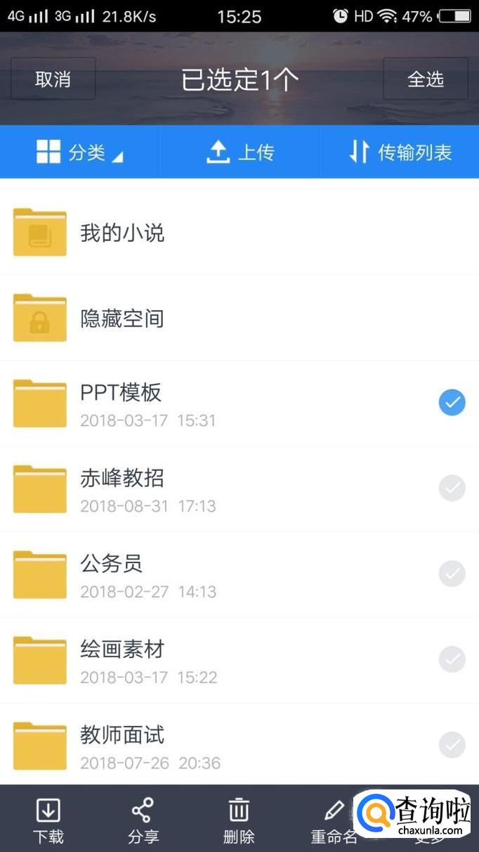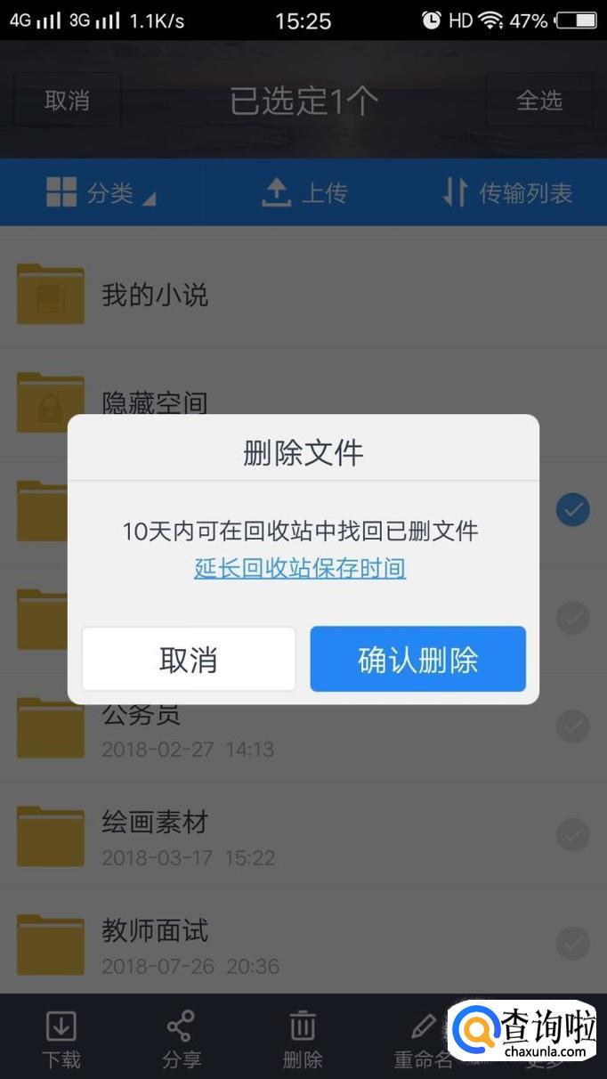 打开百度云,进入首页后,可以看到自己的文件,长点自己想要删除的文件,会出现以下界面。