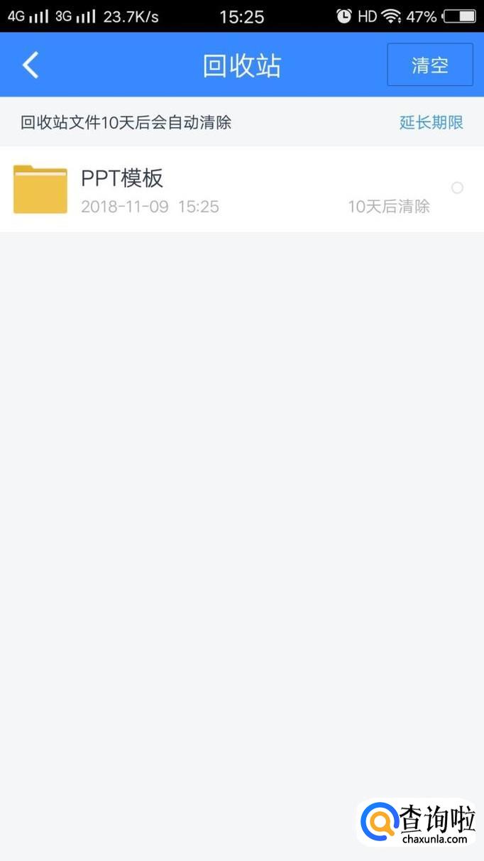 如果想要清空回收站,可以点击页面右上角的“清空”键,便能将回收站的文件清空。