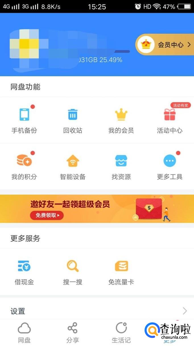 点击首页中的“更多”,可以来到以下界面,找到“回收站”,点击这个菜单,进入回收站,可以看到自己删除的文件。