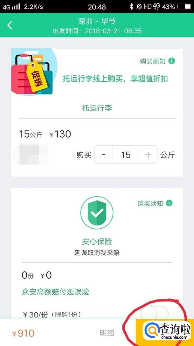 然后再托运那里自己选择托运物品的重量,然后点击下一步。