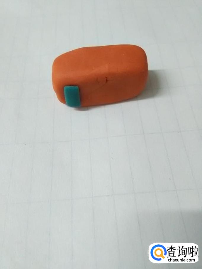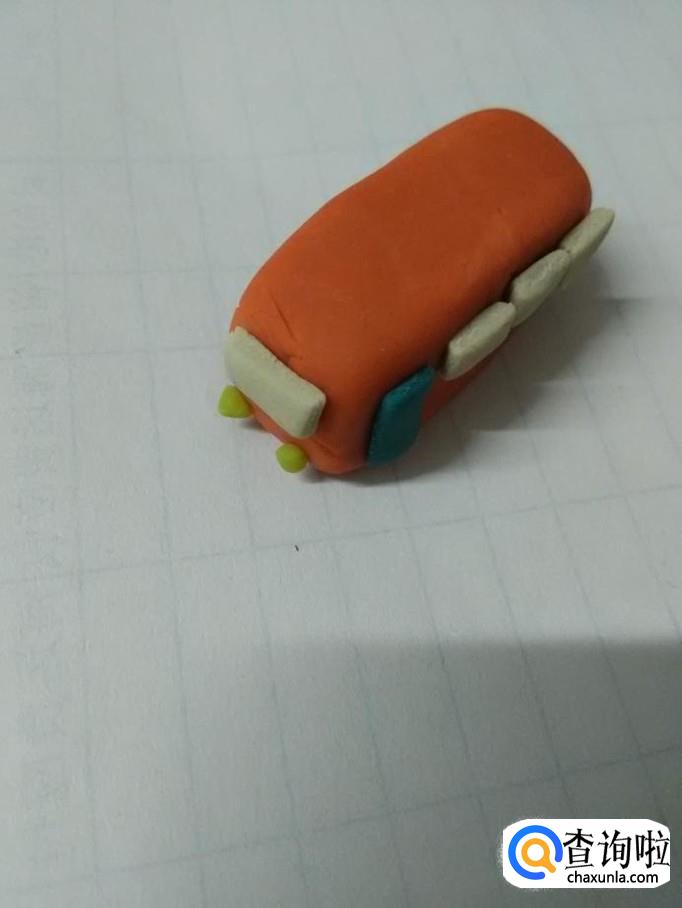 用蓝色捏一个长方形,粘在车身左侧,当作车门。