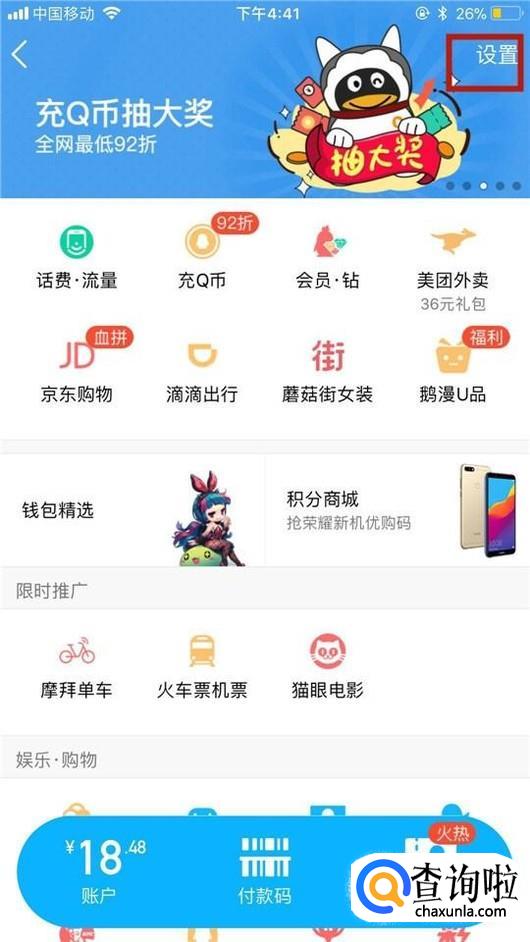 然后点击设置,如下图所示。