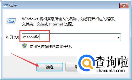 点击电脑键盘上上面的“Win+R”打开运行框,在框里输入“msconfig”,然后点击下面的“确定”,如下图所示。