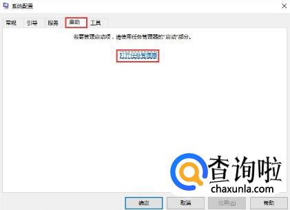 除了上面的“引导”外,开机的启动项也是提升开机速度的一个很好的办法,点击“启动”页面下面的“打开任务管理器”,如下图所示。