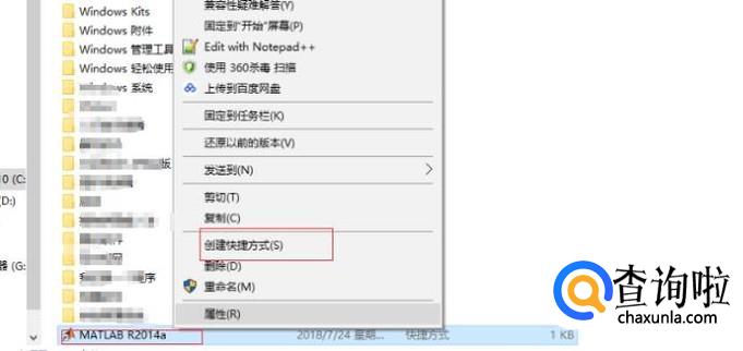 选择matlab 2014a,点击右键,选择创建快捷方式,如图。这样电脑就成功地设置了打开matlab 2014a应用程序的快捷键了。