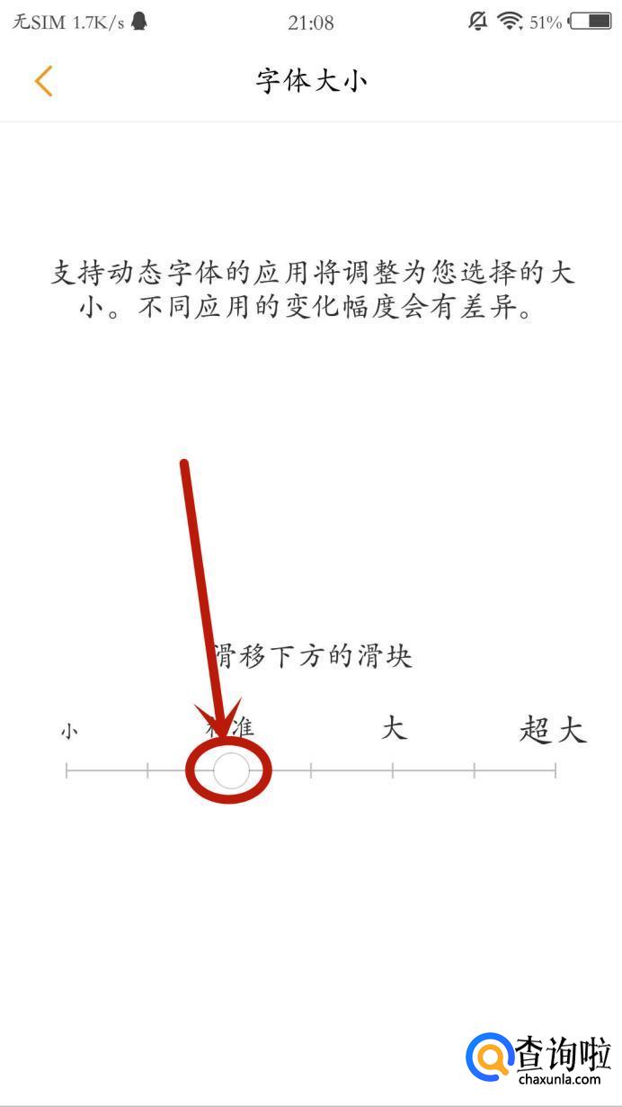进入之后,拖动下面的滑块, 就能改变字体大小。