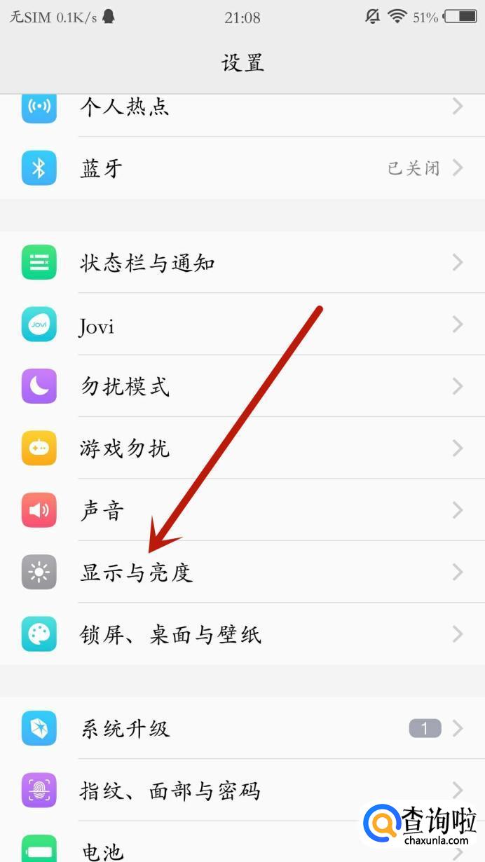 进入手机设置,点击“显示与亮度”,进入下一页面。