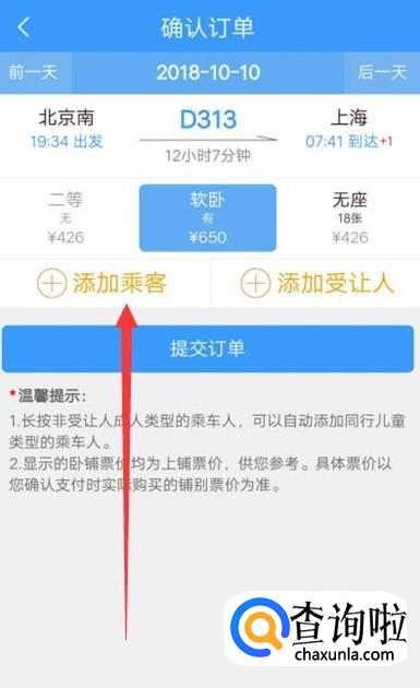 进入之后,点击“添加乘客”,进入下一页面,如图所示。