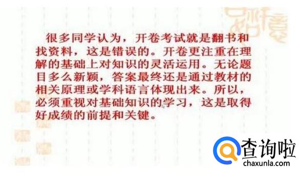 在熟悉课本的基础上,要明白课本中重要的知识点是如何应用的,什么样的情况,应该用什么样的知识点来应对,开卷考试,一般都不是直接考知识点,知识点大多都是隐藏到案例当中的,所以一定要能够从案例中推导出使用的是哪些知识点。