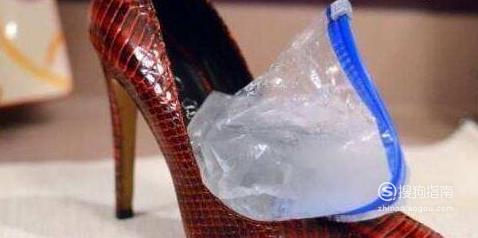 准备两个塑料袋,注意塑料袋不能漏水,然后在塑料袋里装进大约三分之一的水,将口封紧,彻底检查一下确保不漏水的情况下,将塑料袋塞进鞋子里面,然后将其放进冰箱的冷冻室,当然为了确保卫生,可以将鞋子用保鲜膜包裹起来。水在结冰的时候体积会变大,这样鞋子内部的水在结了冰之后就可以将鞋子撑大。大约一晚上的时间就可以拿出来了,融化之后取出即可。