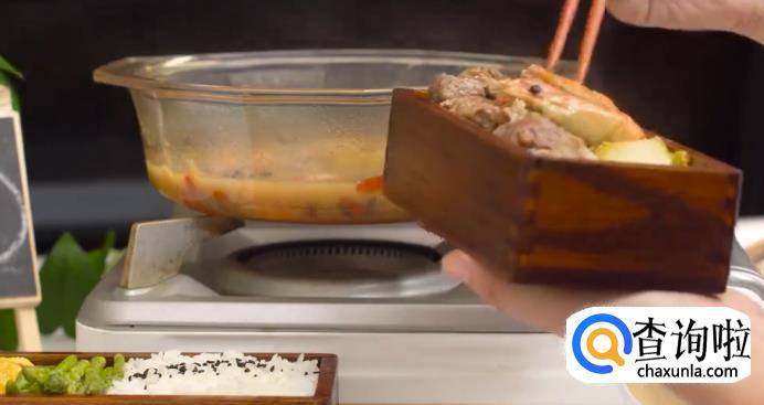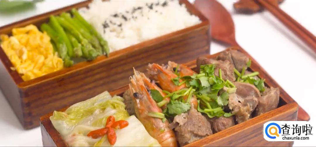 将羊虾煲盛入便当盒中,可以撒上一些香菜做装饰,再根据个人口味加上其他的配菜和米饭,这样一个羊虾煲便当就做好了。