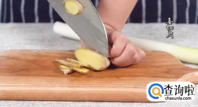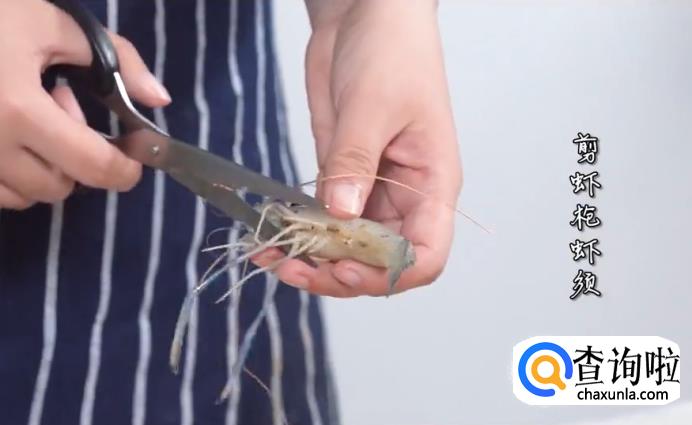 将羊肉切大块;剪去虾枪和虾须;姜切片。