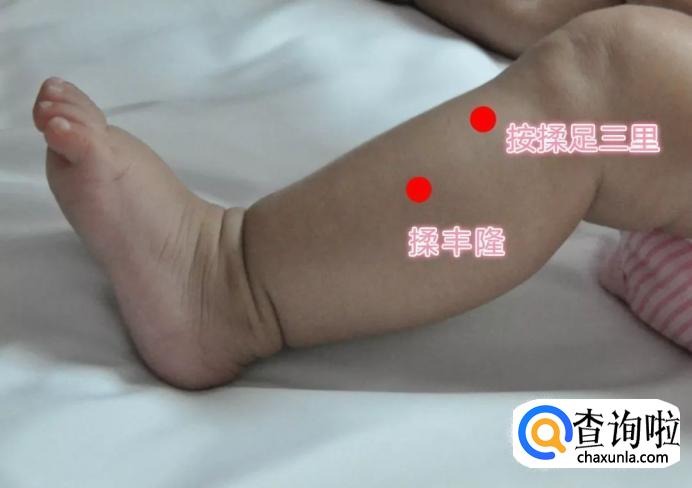 大拇指揉天突穴五十次。按揉三里、丰隆穴两个穴一分钟。