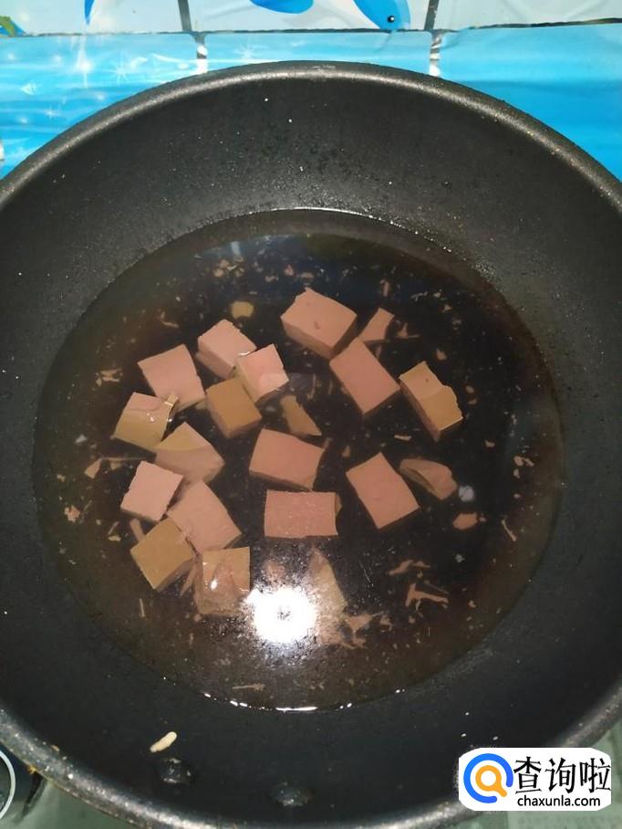 锅中烧开水,水开后将鸭血倒入锅中焯水,焯好之后,盛出备用。