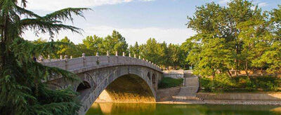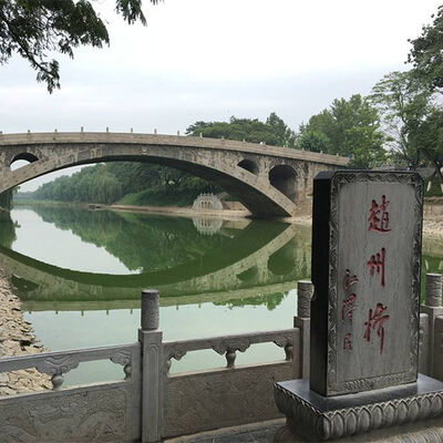 赵州桥又名安济桥,是位于中国河北省赵县城南五里洨河上的一座石拱桥,当地人称之为“大石桥”,以区别于附近的另一座“小石桥”。一般认为,该桥始建于隋朝,设计者是隋代杰出的工匠李春,建造于大业六年(605年),唐宋明清各代均曾有过整修。