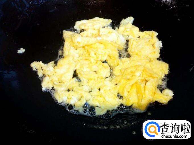 用锅先把鸡蛋炒出来,炒至八分熟,盛出备用。