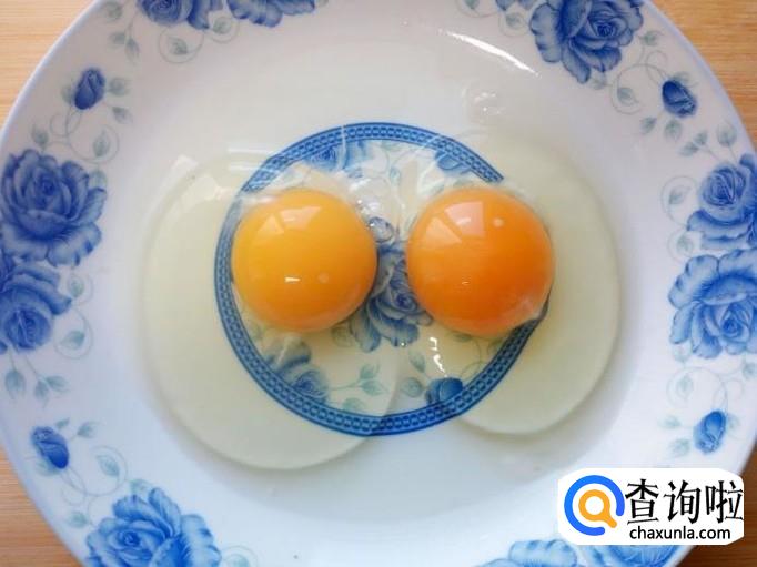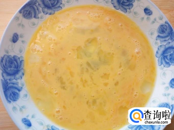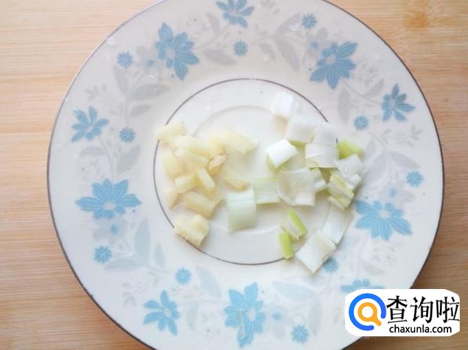 鸡蛋打入盘中,搅拌成鸡蛋液。切好葱,姜备用。