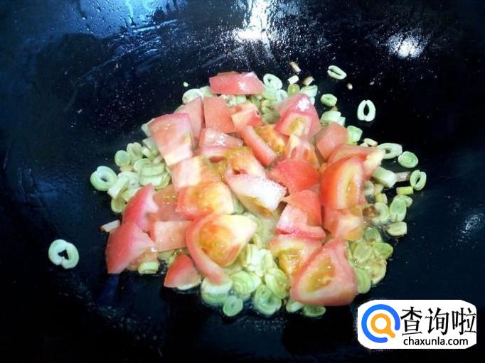 鸡蛋略翻炒一下,放入少许味精,关火出勺。