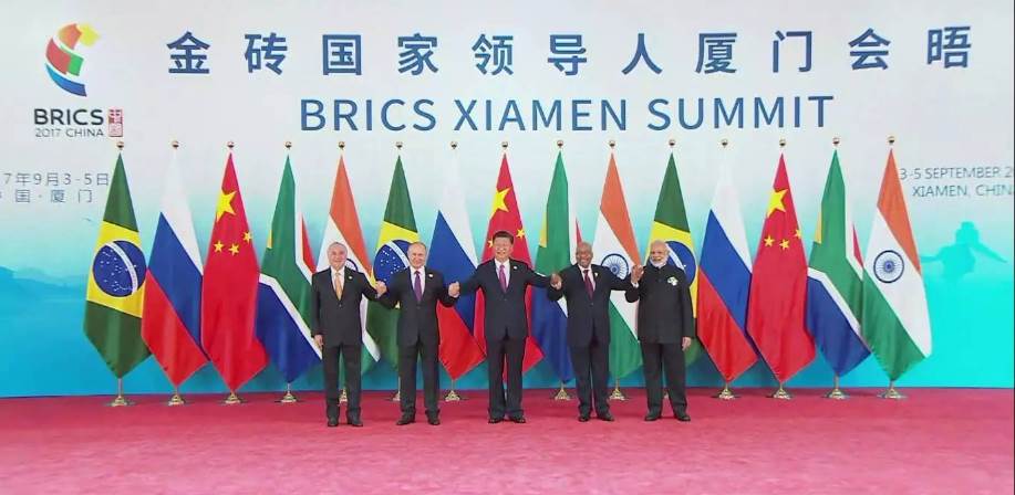 2010年南非(South Africa)加入后,其英文单词变为“BRICS”,并改称为“金砖国家”。金砖国家的标志是五国国旗的代表颜色做条状围成的圆形,象征着“金砖国家”的合作,团结。2017年12月,金砖国家入选“2017年度中国媒体十大流行语”。