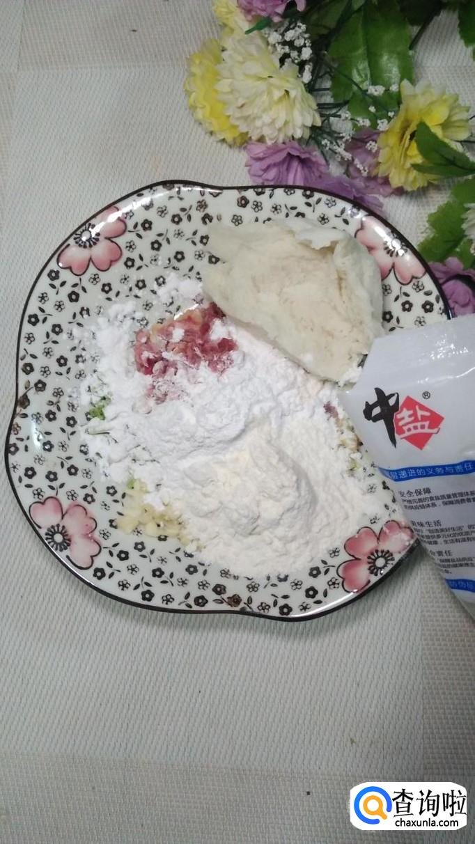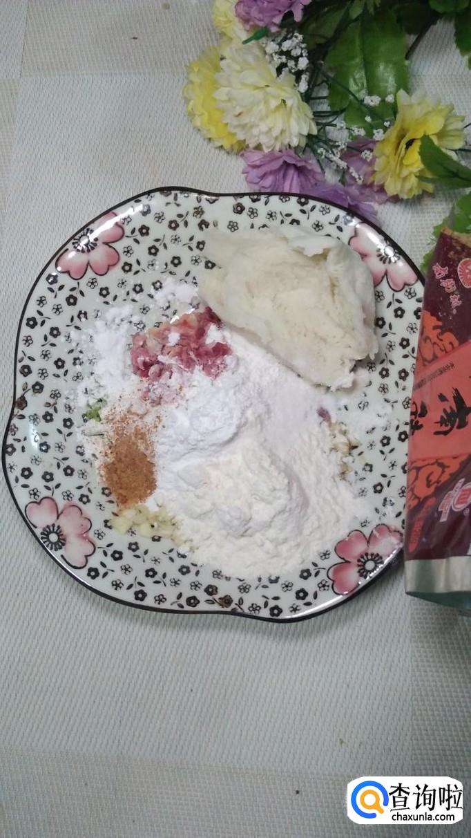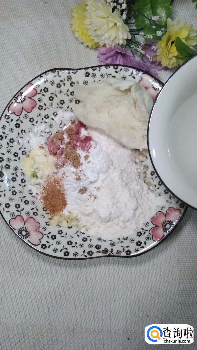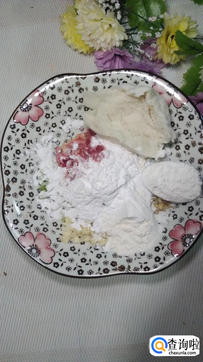 放入适量的面粉,淀粉,糯米粉,面粉,淀粉,糯米粉的比例最好是1:1:1。