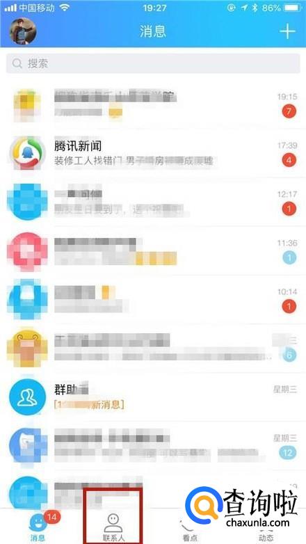 如下图,点击屏幕下方的联系人