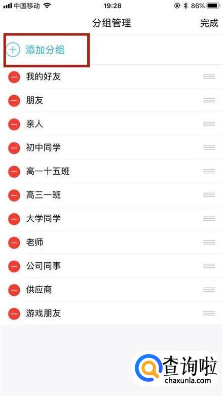 如下图,点击添加分组