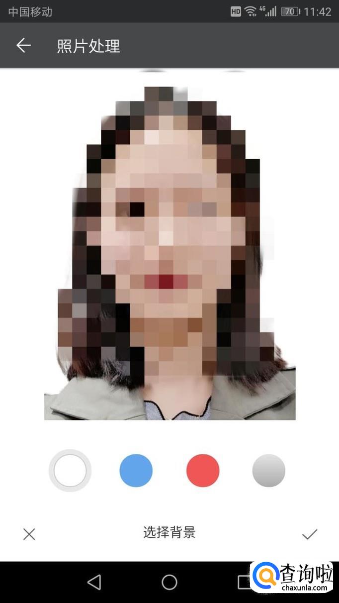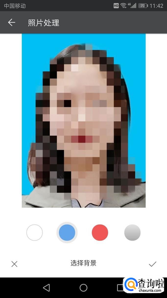 拍摄完成照片后,可以调整背景的颜色,如图先是白色背景,然后调整为蓝色,只要点击蓝色即可进行调整,调整完成后确定。