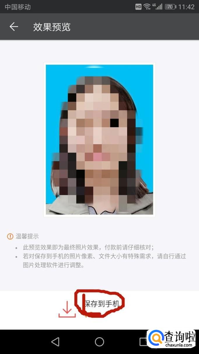 确定后就进入“效果浏览”,如果觉得满意即可点击下方的“保存到手机”,注意保存时看是否要付费;如果不满意则重新开始拍摄再进行调整。