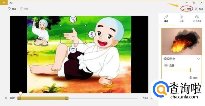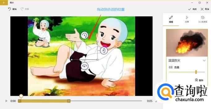 选择其中某一种效果以后,我们还可以将其拖动到合适的位置,添加好效果以后点击右上角的"完成";
