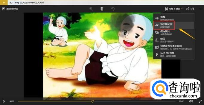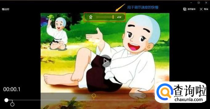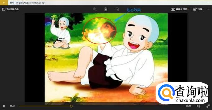 然后系统就会自动保存,点击播放按钮还可以查看刚刚制作好的动态效果图,如果感觉这个动态时长太短,那么点击"编辑&创建"下方的"添加慢动作",如图所示