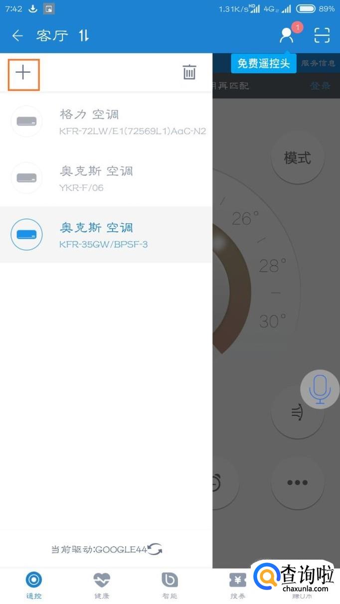 然后下载一个遥控精灵(因为万能遥控不是很好用,遥控精灵方便点),安装好之后点击左上角的三杠线,然后点加号。