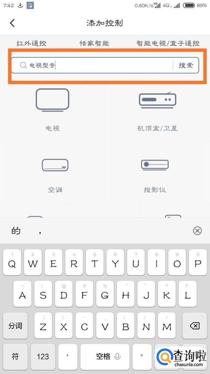 可以选择在上面的输入框里面输入电视机的型号(在电视的说明书上面),也可以直接选择“电视”。