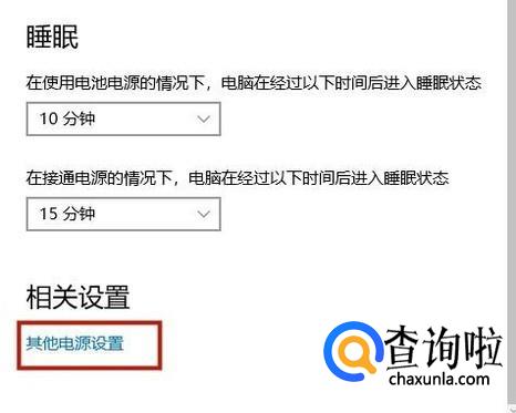 接着点击其他电源设置,如下图所示。