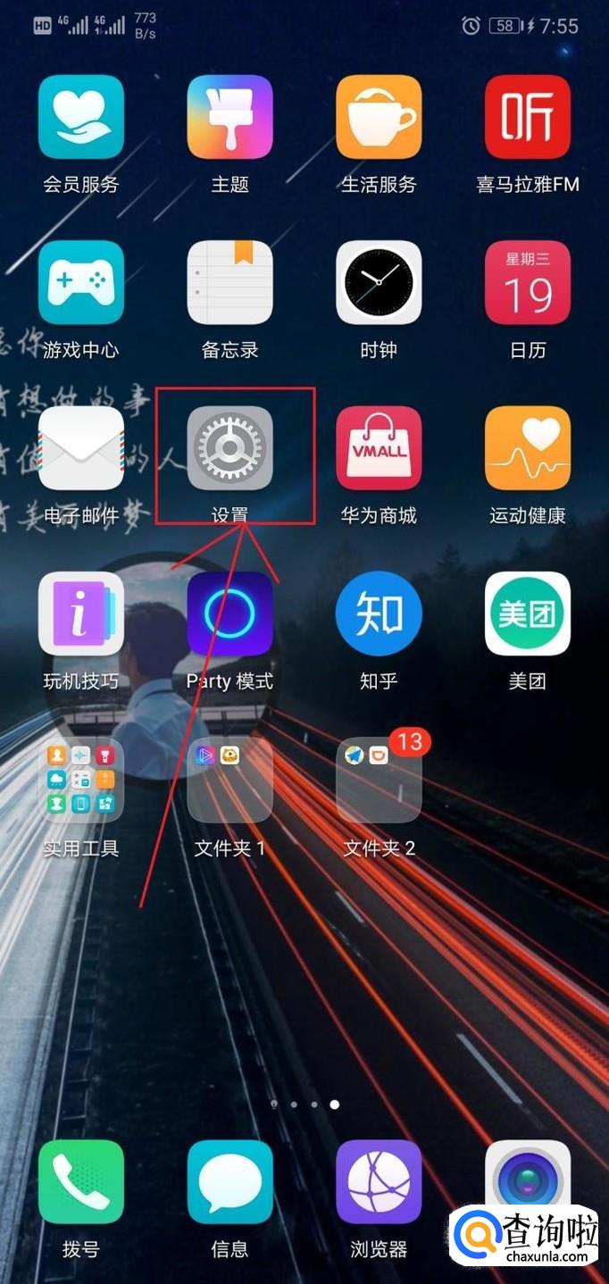 在手机桌面找到“设置”,点击进入