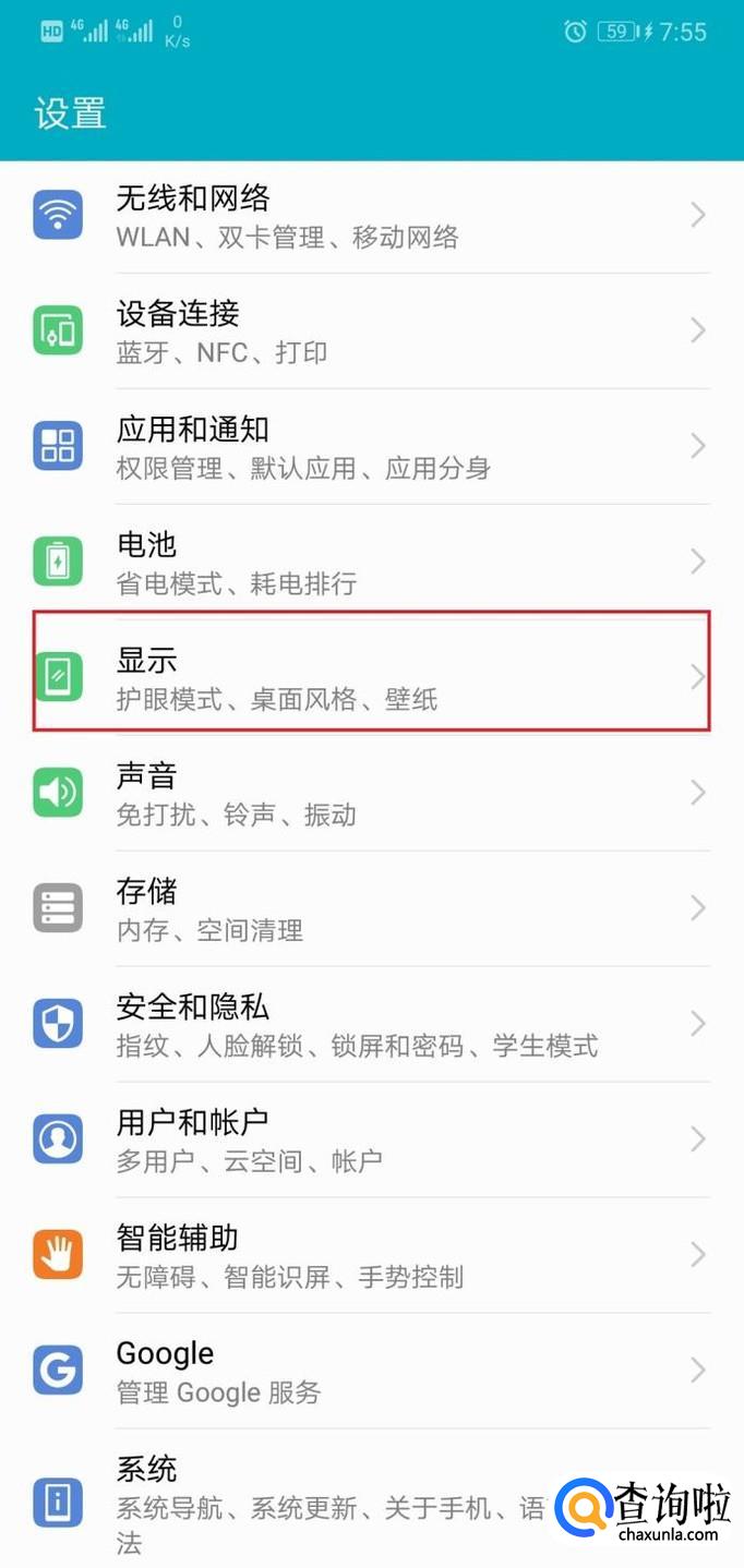 在设置界面,根据分类,由于需要改变软件的显示方式,所以打开“显示”选项