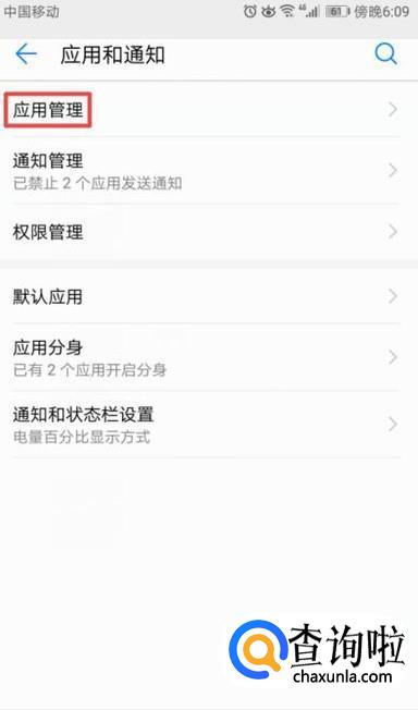 然后点击应用管理,如图所示;