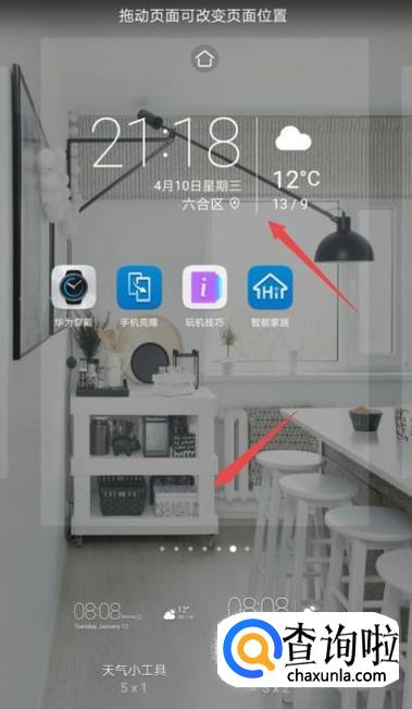 然后就可以在手机桌面上看到天气小工具了,点击空白处;