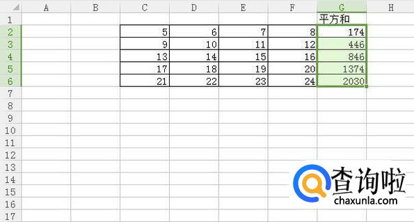 接着把公式往下拉就可以算出所有行的平方和了,你学会了吗?赶快动手试一试吧。